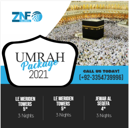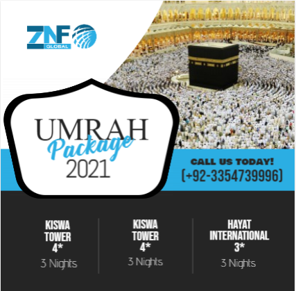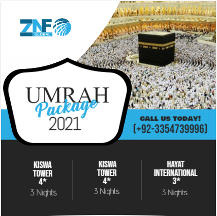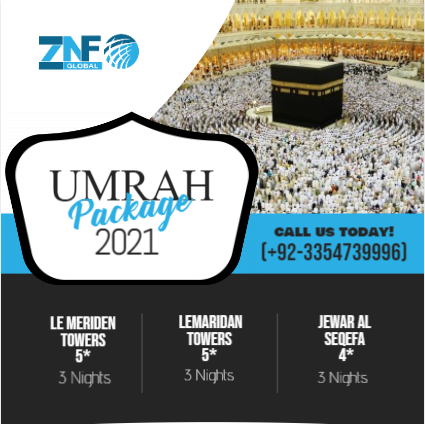 Package includes (Umrah visa, Complete trip Transport by Private cars, Three meals per day for First Three Days Only.