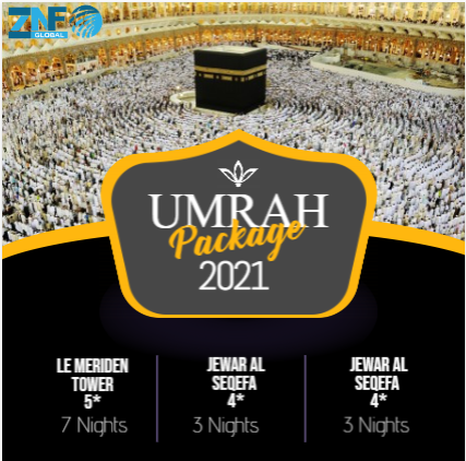 Package includes (Umrah visa, Complete trip Transport by Private cars, Three meals per day for First Three Days Only.